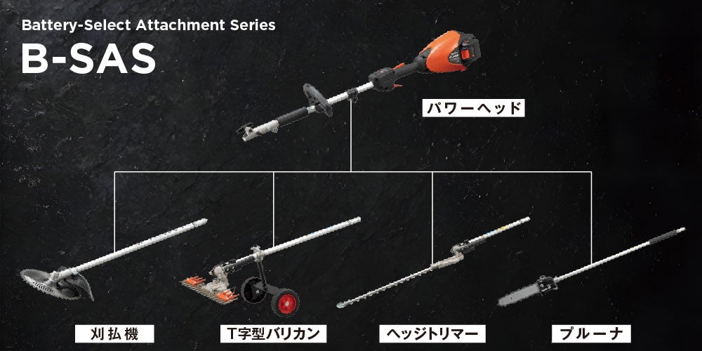 エンジンツールの力強さを受け継ぎ、機動力を進化させたECHO50Vシリーズにバッテリーセレクトアタッチメントシリーズ B-SASが登場。