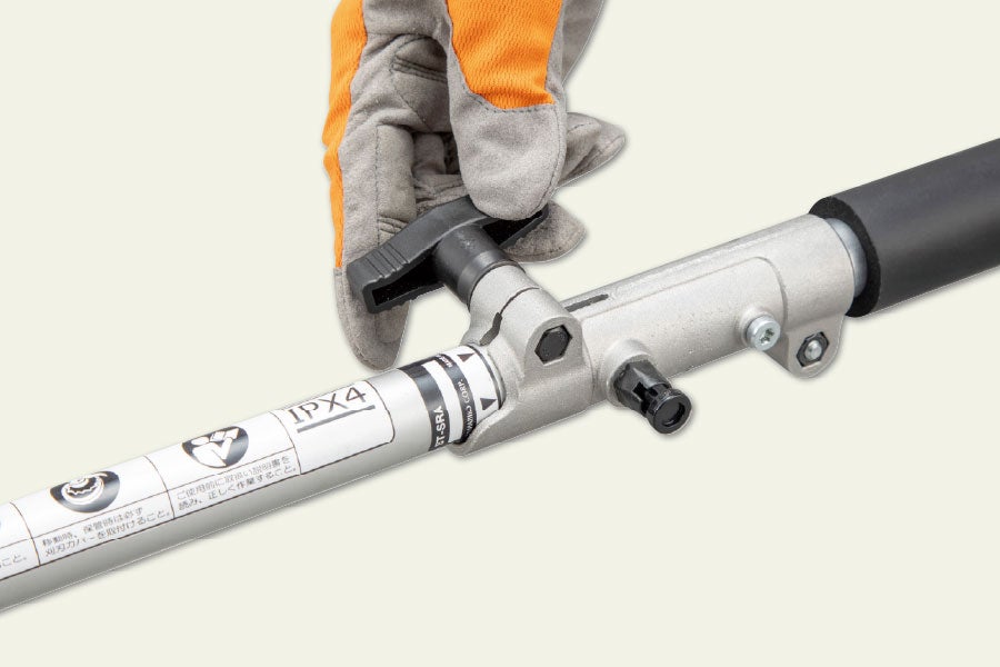 1台のパワーヘッドで、「刈払機」「T字型バリカン」「ヘッジトリマー」「プルーナ」の4種類のアタッチメントを付け替えできます。
