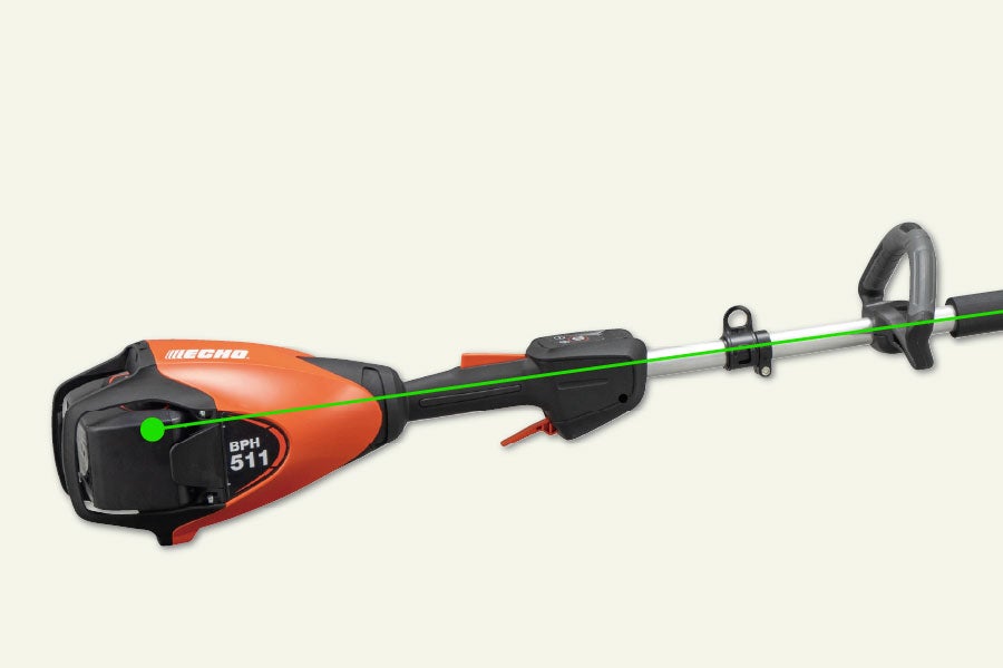 モーター・バッテリーの重心を、ドライブシャフト軸上に置くことで バランスに優れ、足場の悪い傾斜地でも安定した作業が行えます。