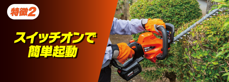 バッテリータイプなので、エンジンタイプのような始動時の作業が不要です。