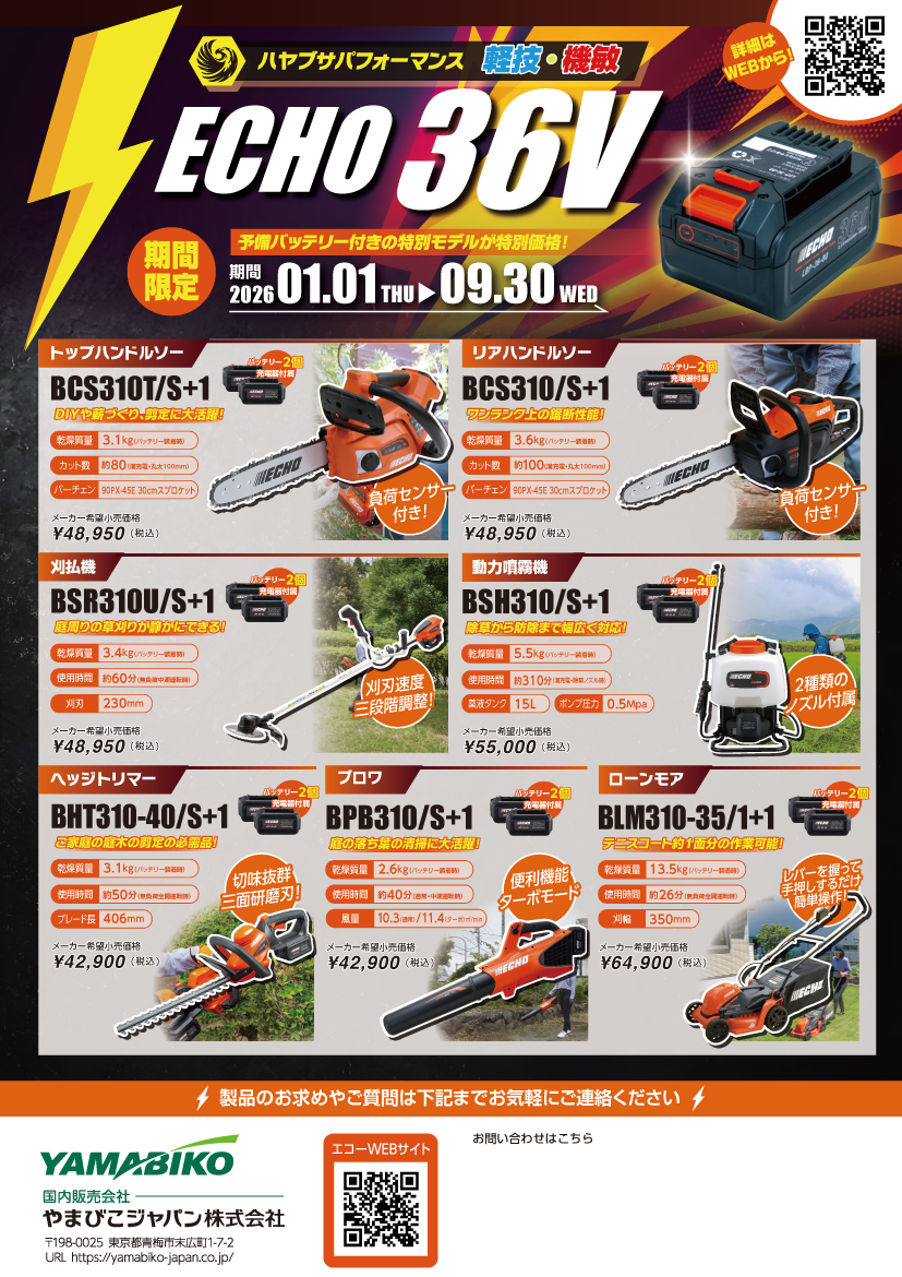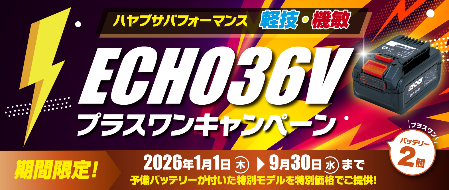 そんなエコー36Vシリーズから期間限定にて予備バッテリーのついたモデルがお買い得なお値段で登場!