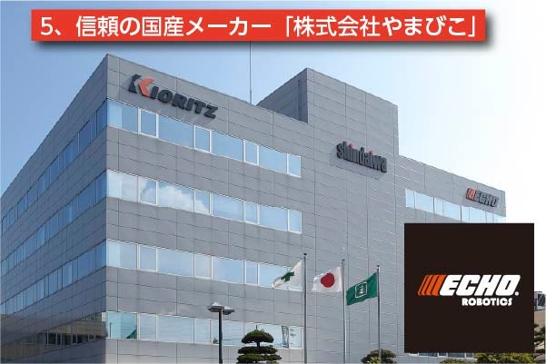 エコーロボティクスは、刈払機やチェンソー、パワーブロワでお馴染みの「KIORITZ」ブランドの製造メーカーである「株式会社やまびこ」が手がける、大型ロボット芝刈機のブランドです。国内メーカーの手厚いサポートで安心感が違います。