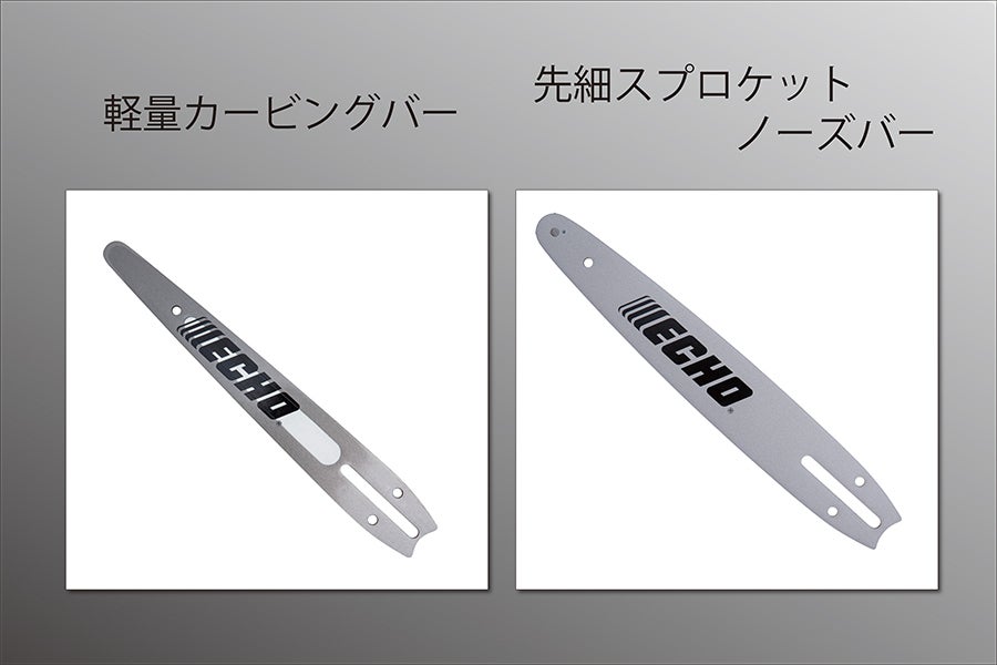 軽量カービングバーと先細スプロケットノーズバーをご用意。用途に合わせてお使いいただけます。
