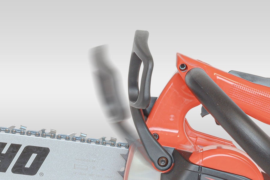 安全に配慮した慣性式チェンブレーキを採用。キックバックが発生したら瞬時にチェンを止めることが可能なチェンブレーキを採用することで、思わぬ危険を低減します。