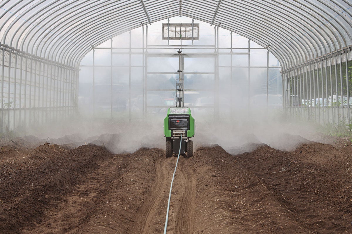 整備されたハウス内での防除作業を自動化し、省人・省力化に貢献する、共立ロボットスプレーカをご紹介します。