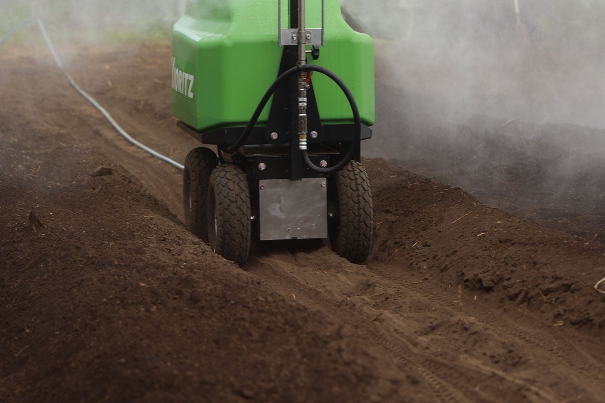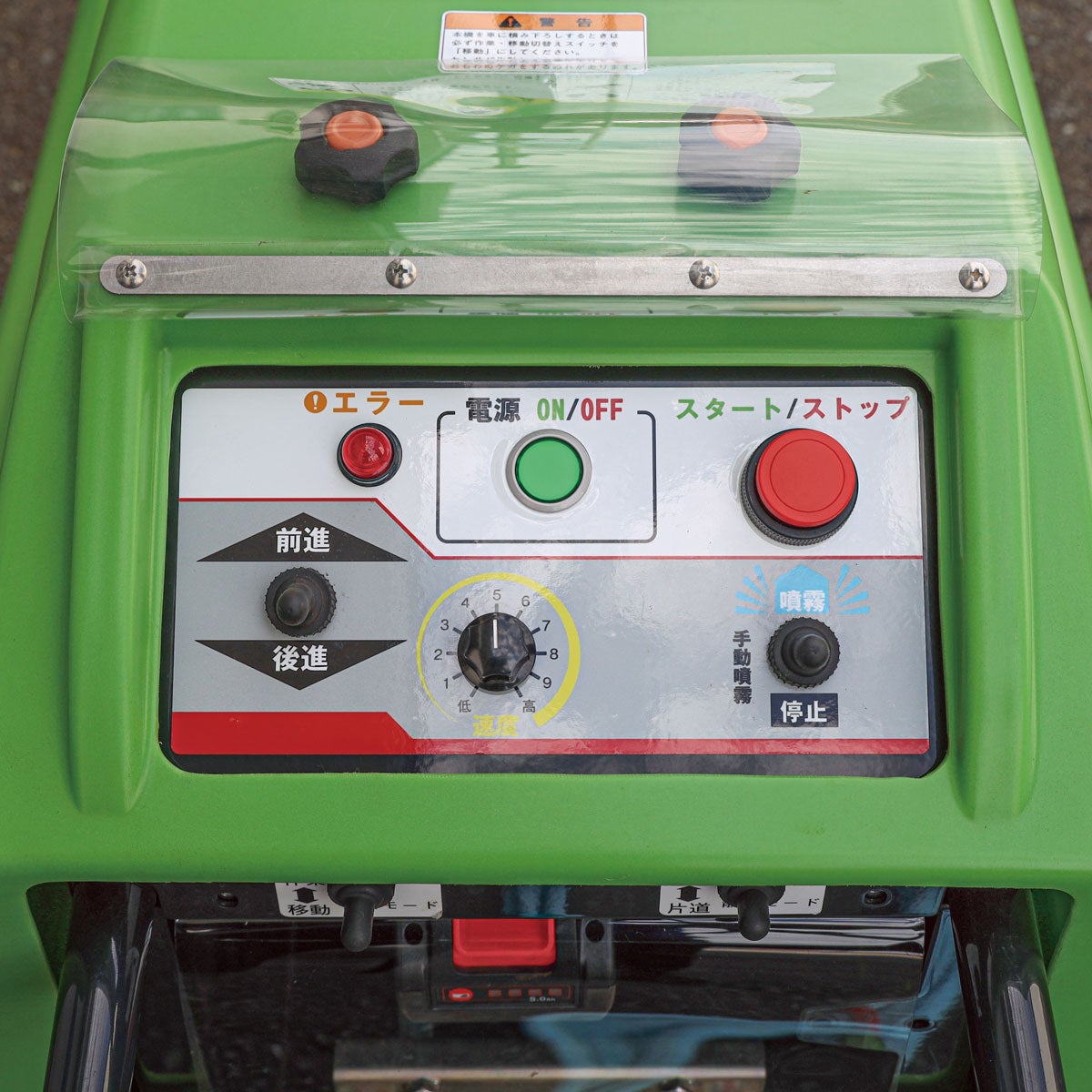 操作はシンプル。畝間の所定位置にセットし、スイッチを押すだけでスタート。