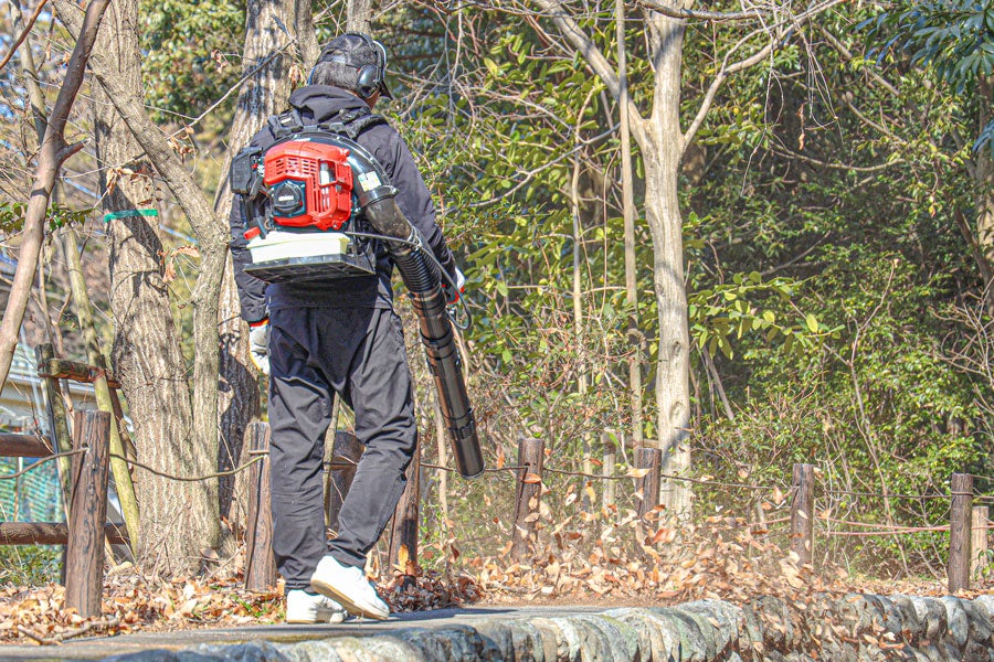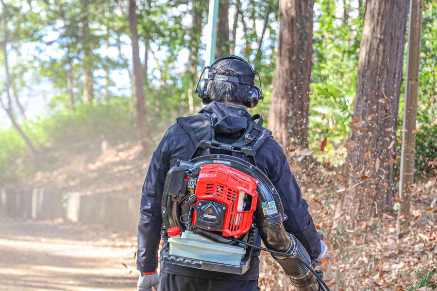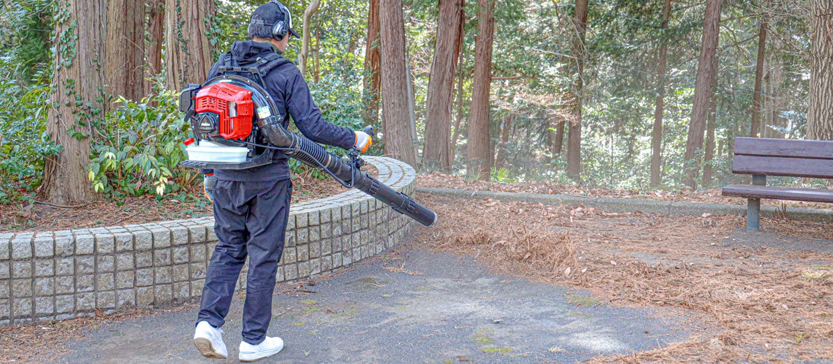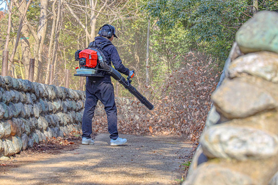 風量19.9㎥/minを誇る中型モデル。大量の落ち葉や濡れた落ち葉も余裕でこなせるパワフルエンジンを搭載しています。