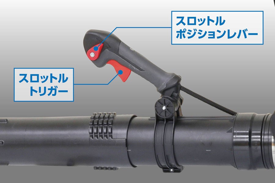 他モデルでも評価の高い、クルーズコントロールレバーを採用。スロットルポジションレバーでもエンジンの回転調整が可能となり、常にトリガーを握る必要はありません。